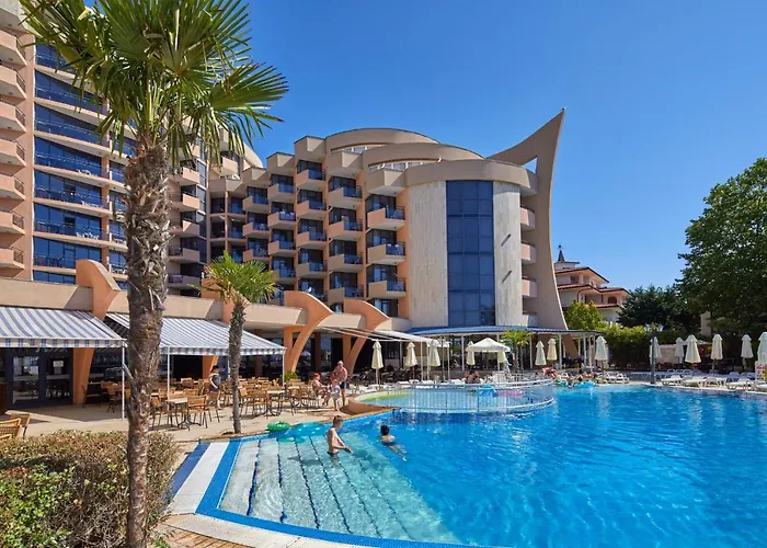 Разположен в сърцето на живописния Слънчев бряг, България, четиризвездният Fiesta M & Marlin Beach Hotel обещава престой, където елегантността се среща със спокойствието на черноморското крайбрежие. Предлагайки редица върхови удобства заедно с бърз достъп до ослънчения плаж, този хотел осигурява запомнящо се преживяване за всеки гост. Със своето стратегическо местоположение близо до множество местни атракции, той се нарежда сред най-добрите хотели в Слънчев бряг, България, както за търсещите отдих, така и за любителите на приключенията.